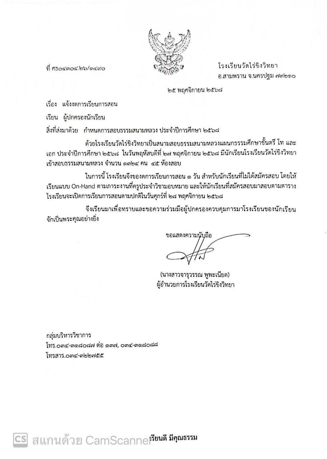 โรงเรียนวัดไร่ขิงวิทยา เปิดภาคเรียนที่ 2 / 2568 วันที่ 22 ตุลาคม พ.ศ. 2568